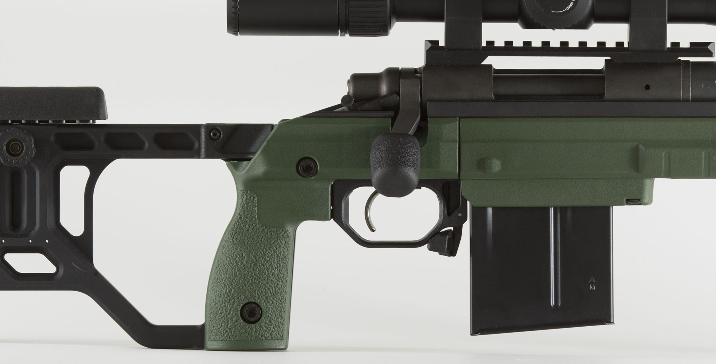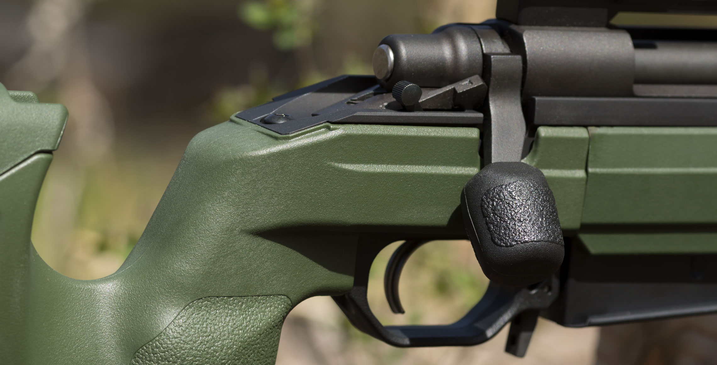 Black Bolt Lift SV installed on Remington 700 in KRG Bravo Chassis in Sako Green