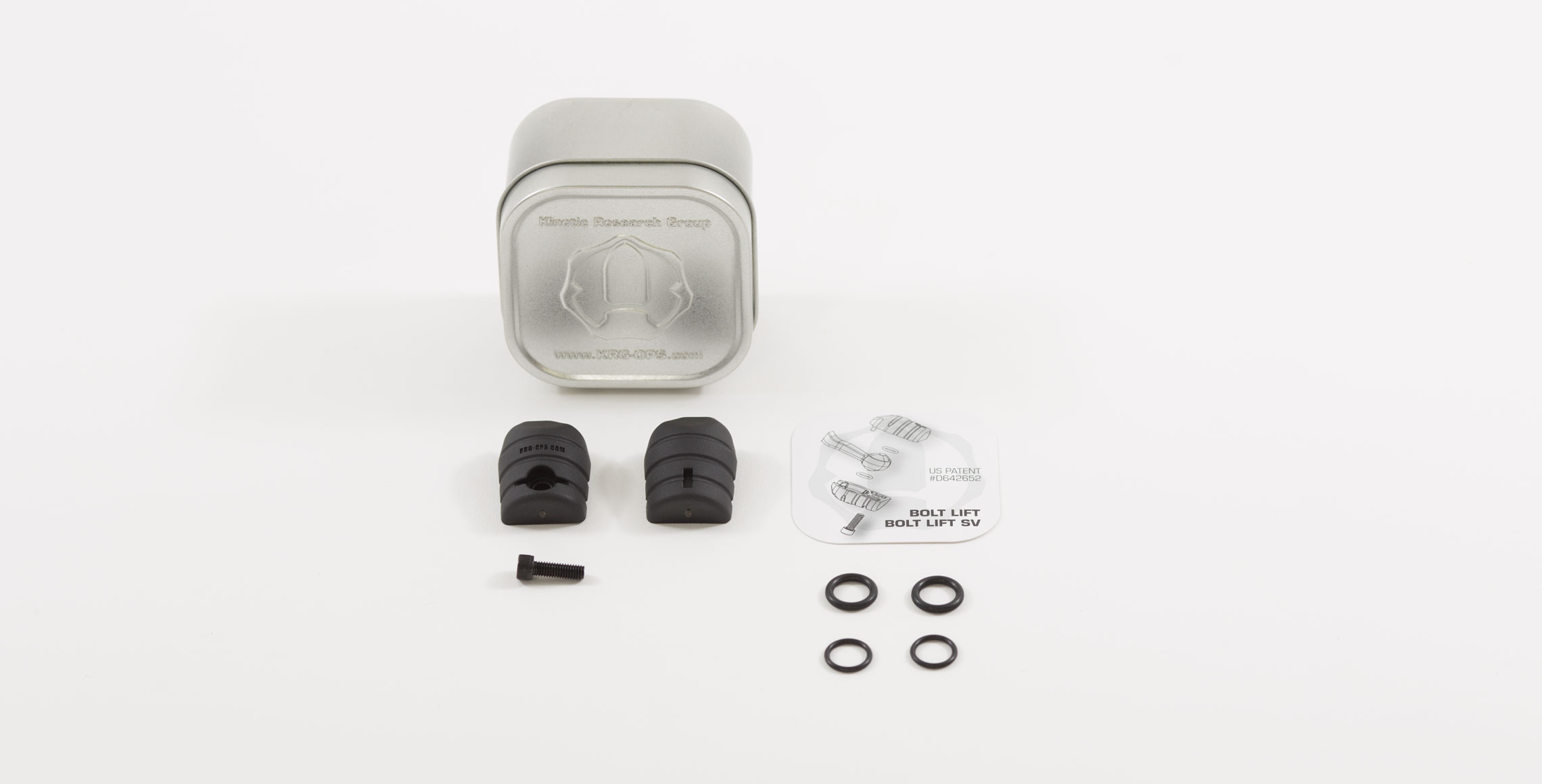 The Bolt Lift consists of two reinforced polymer knob halves and some supporting parts. Users can choose between a permanent installation using epoxy, a rock solid removable setup, or a quick simple install using the supplied spacers to tailor the fit of the Bolt Lift to the factory bolt handle. A stainless steel screw to clamp the knob halves together and some reinforcing pins round out the package.