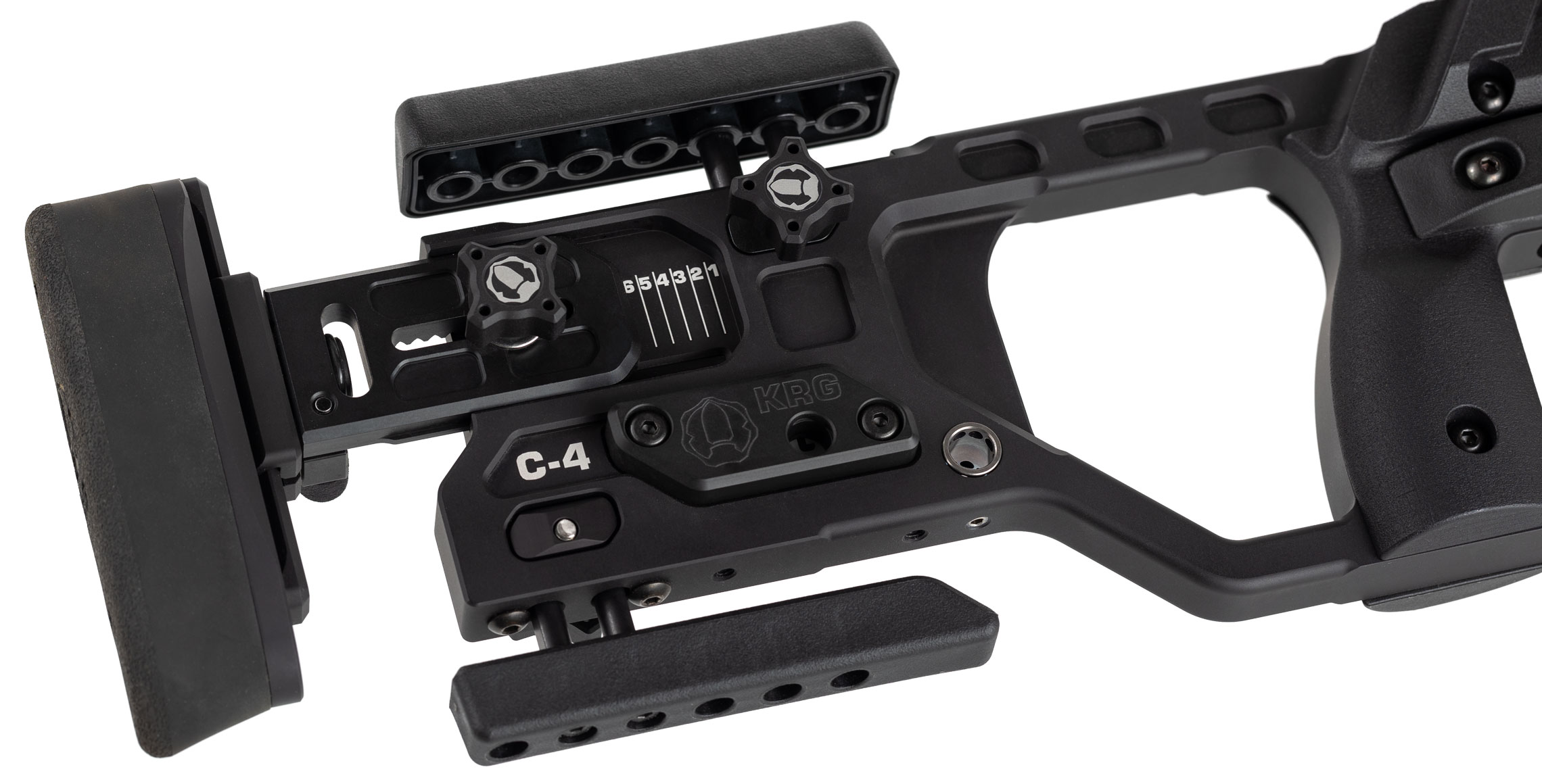 Add weight to the backend of your C-4 Chassis. The Rear Weight can be added to the right and/or left side of the C-4 backend for better balance and easier followup shots. Also the weight can be mounted under the right grip panel inside the pocket.