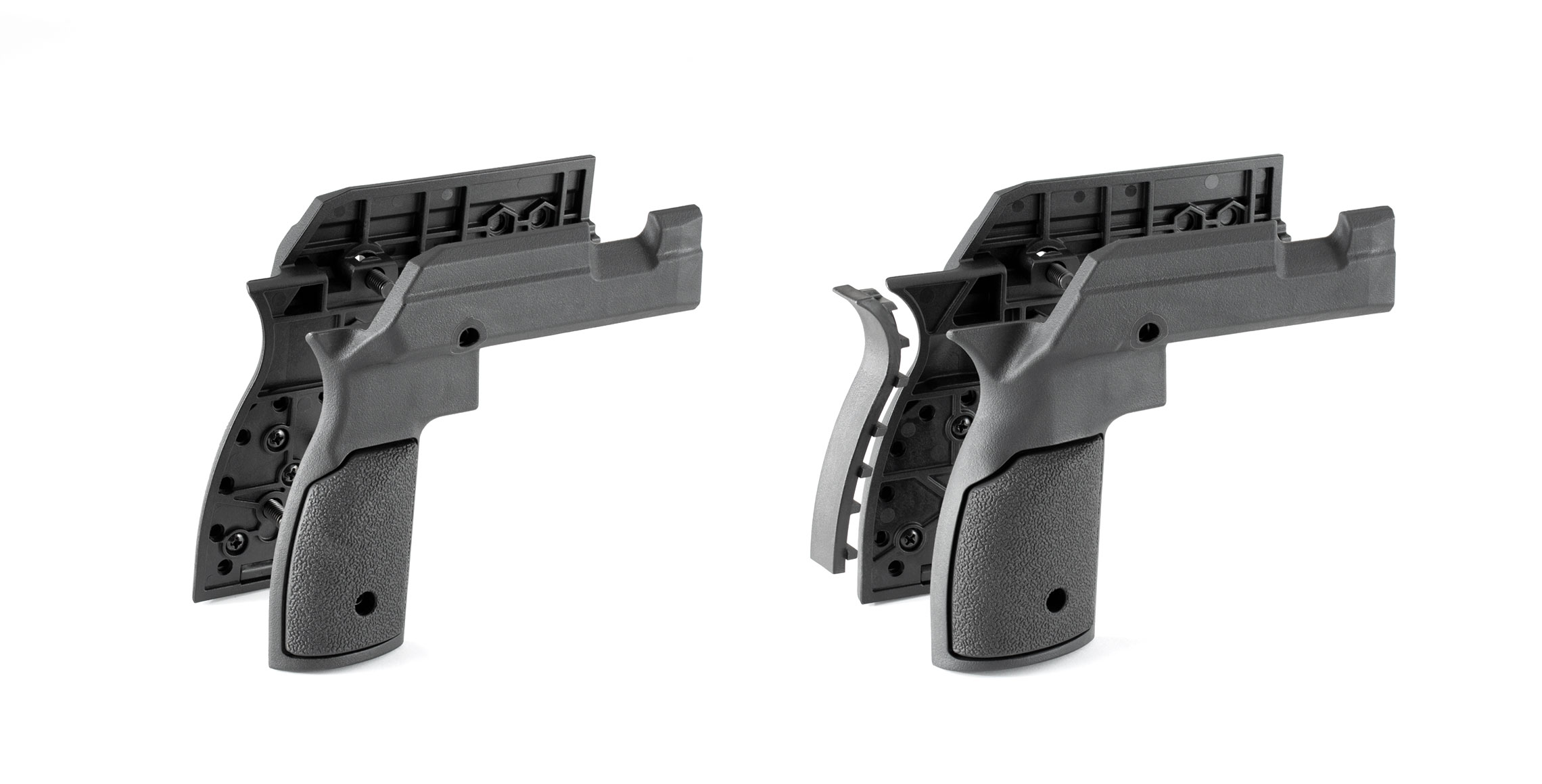 Large Grip Panel Set: For those with larger sized hands, these grips are the way to go. A large palm swell, with interchangeable inserts, and ergonomic shape make for one of the most comfortable grips available. Includes both right and left grip panels, plain inserts, and the required rear spacer.